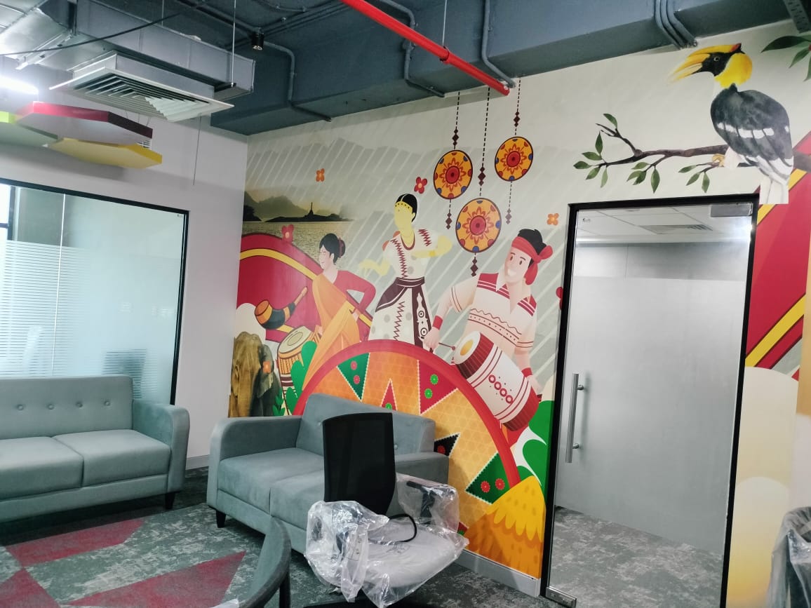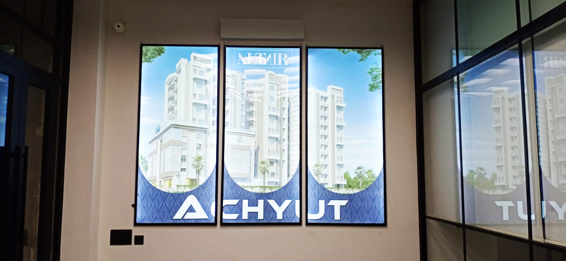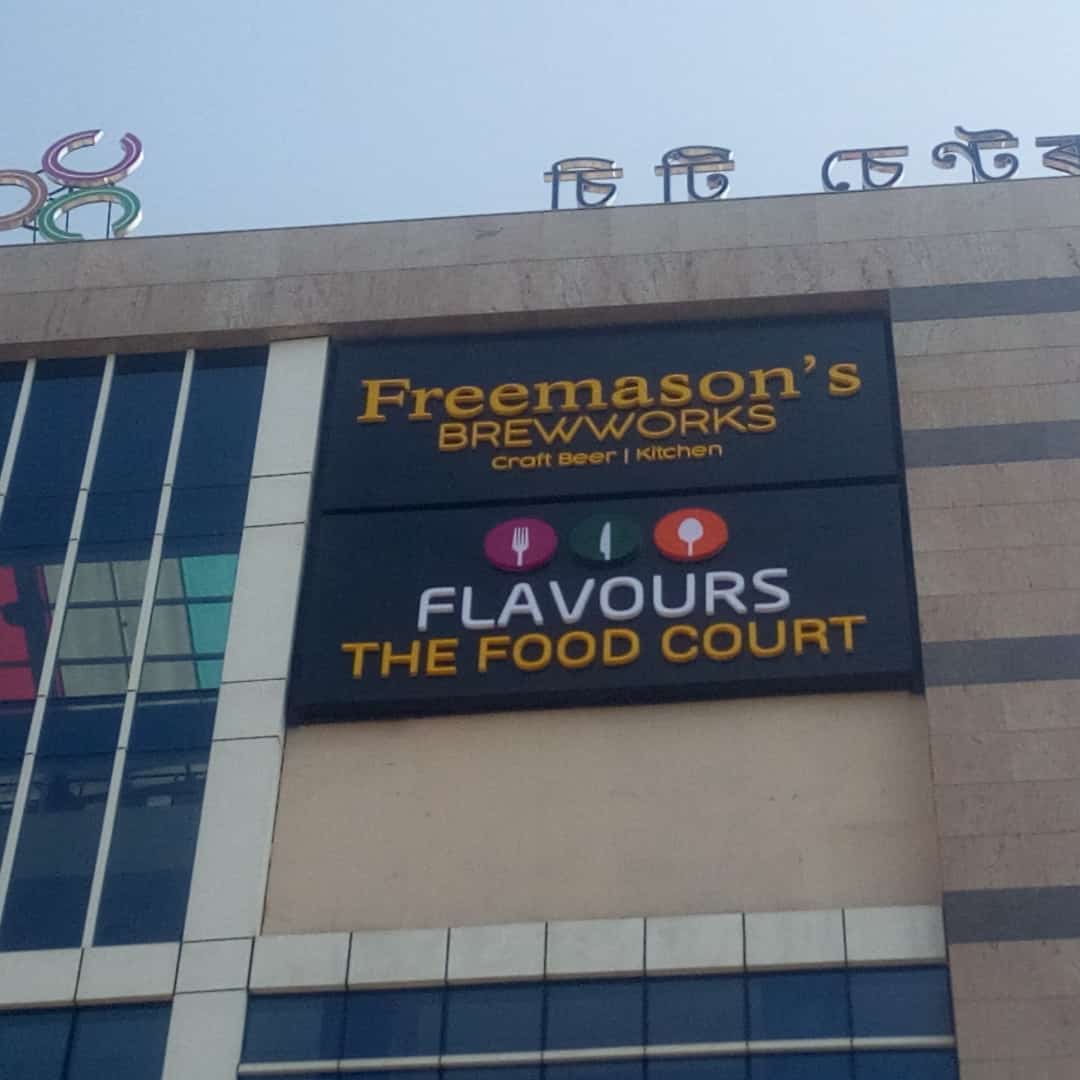 City center mall signage work for Freemasons.and flavors food court at 9 floor and that was done without scaffolding.