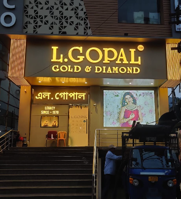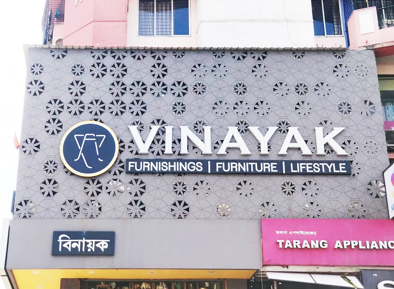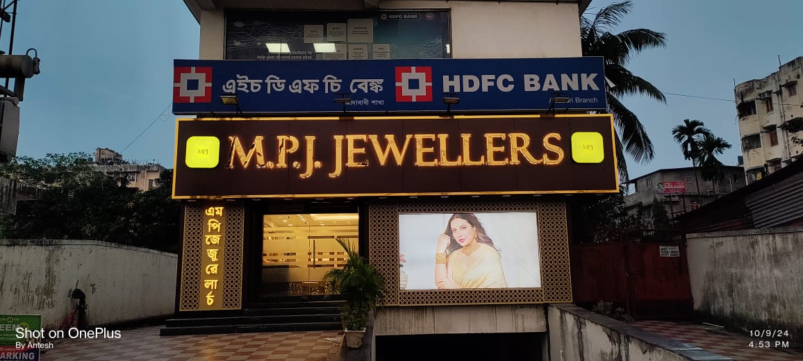 Facade work for mnj jewellers at jorhat is a very clean and attractive signage work done by our team.
